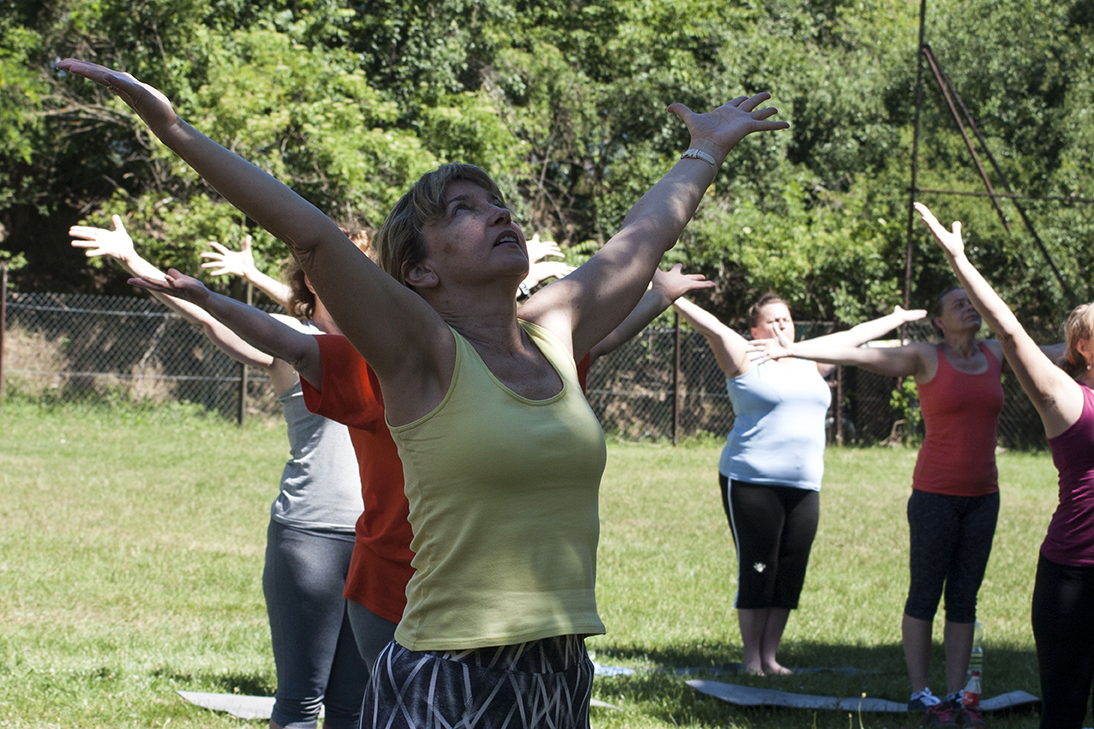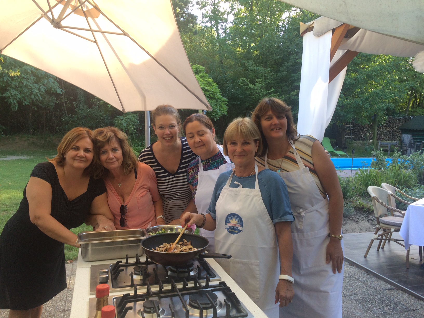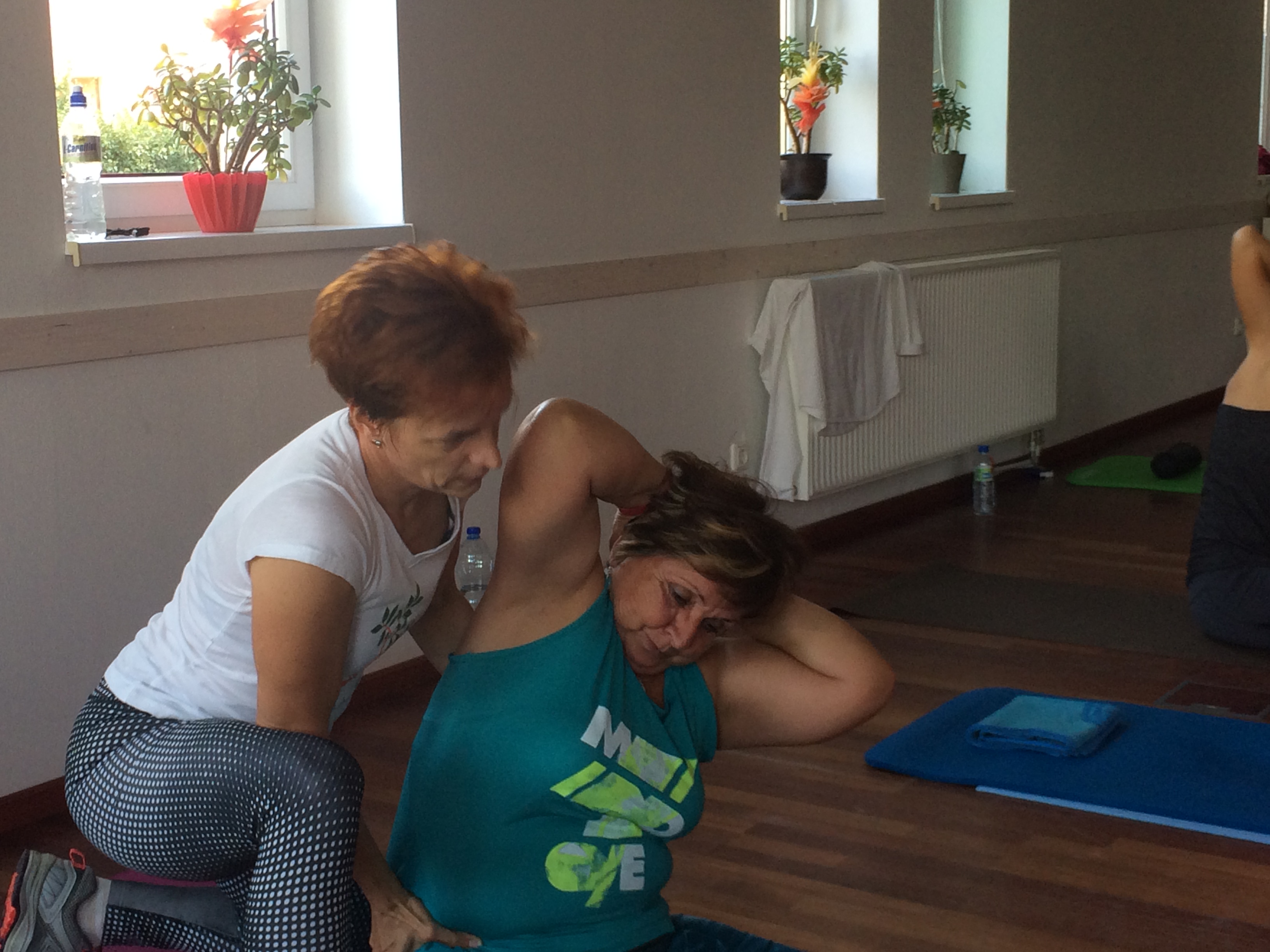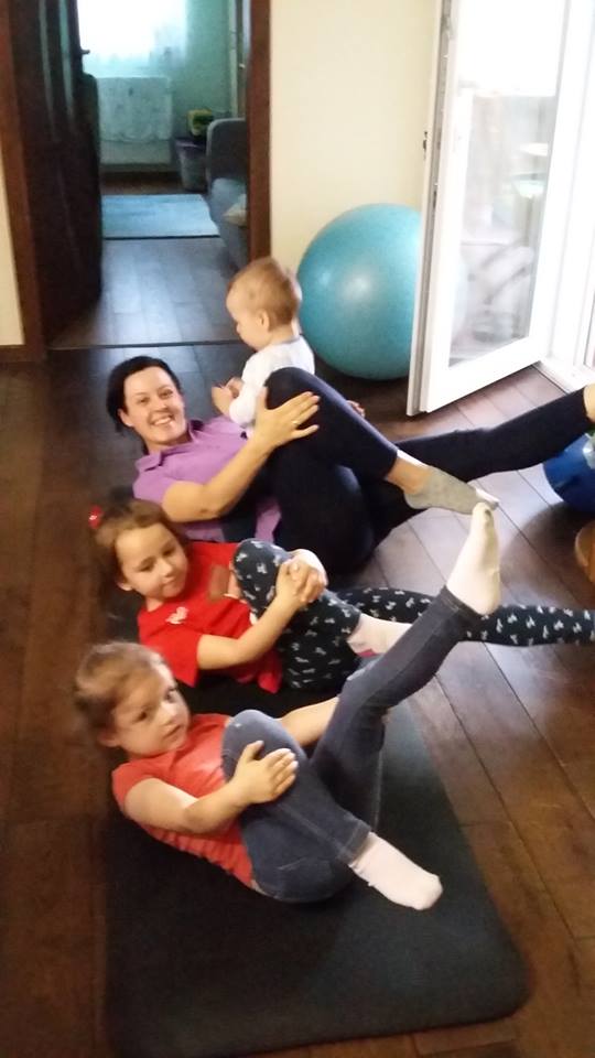 | Linda Finnországból vett részt a programban és még a sziklamászás közben is gyűrte a gyakorlatokat ;)! | Kata pedig otthon, három kicsi Gyermekével tornázott napi szinten :)! |