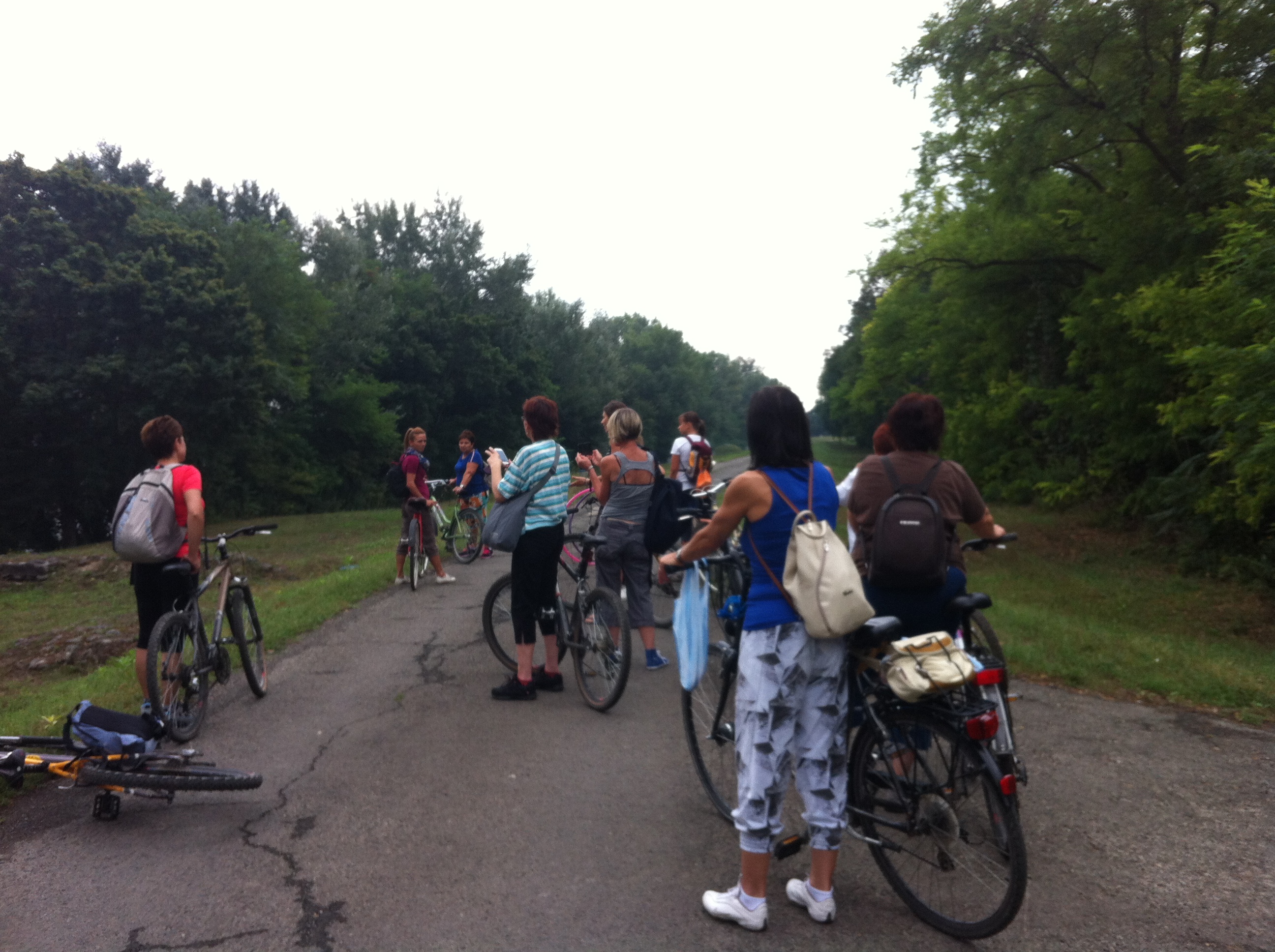 Második napunkon a reggeli 3/4 wellness step és Pilates óránk után drótszamárra pattantunk, hogy felfedezzük a “négyszögletű kerek erdőt”! Külön vízmű-engedély birtokában tényleg a Szentendrei sziget mesebeli szegleteibe sikerült eljutnunk profi “szigetkalauzunk”, Melinda vezetésével. Végigkerekezve a Duna mellett láthattuk a Budapest vízellátásának 80%-ról gondoskodó parti kutakat és meghallgathattuk a mára már sajnos kiszáradt Merzsán tó történetét. Meseország szellemének megfelelően, a mező virágaiból “báli ruhát” díszítettünk, “herceget” is foghattunk magunknak, sőt, hulahopp karikával táncot is lejtettünk 😉 …