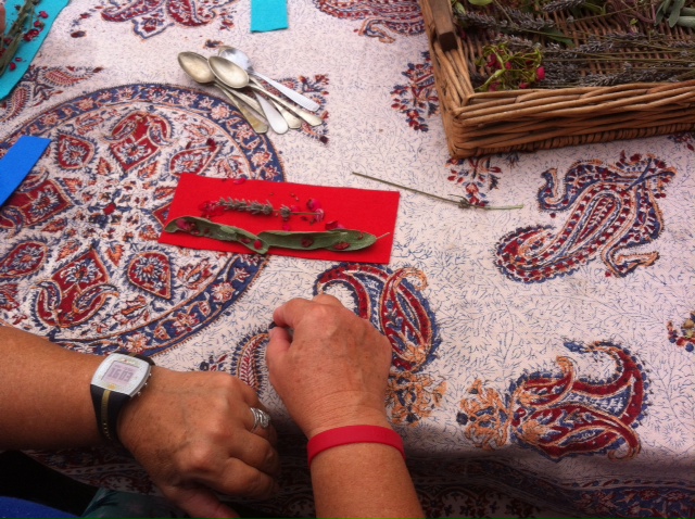 A 3 órás biciklitúrát követően Sasa kertjébe érkezve megpihentünk kicsit. Sárfi Gabriella – a helyiek körében csak Sasa 🙂 – házi készítésű szörppel és igazi feketekávéval várt minket. Meg egy történettel, amely mindnyájunkat megérintett és mélyen elgondolkodtatott. A “csatni története” az övék. Arról szólt, hogy egy falu – Szigetmonostor – és az ismerősök, barátok összefogása hogyan segített, hogy Sasa lánya, a nagyon súlyos beteg Lili végül 8 év küzdelem után teljesen meggyógyulhasson … Arról, hogy éled a hétköznapi életed; minden rendben Veled és körülötted … és egyszer csak történik valami. Valami, amit nem értesz, miért pont Veled … hogy lehet ez … hogy fogsz ebből kimászni, hogy éled túl. És arról, hogy értékelődik át egyszerre minden Benned. S miközben a történetet hallgattuk, gyógynövényes indián karkötőt készítettünk magunknak, ami – reméljük – megvéd minket, ha mindentől nem is, de legalább az “ártó szellemektől” …