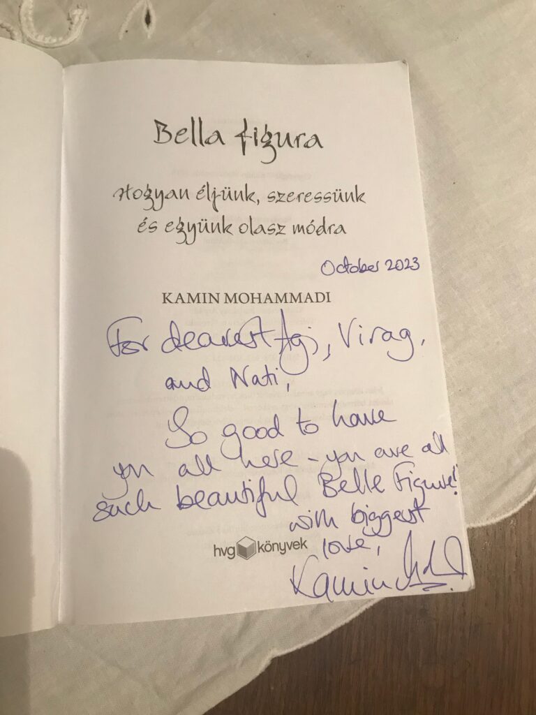 „Van egy szuper klassz könyv, nemrég jött ki. A Bella Figura – olvasd el! Imádni fogod …” – válaszolta Gyöngyi.